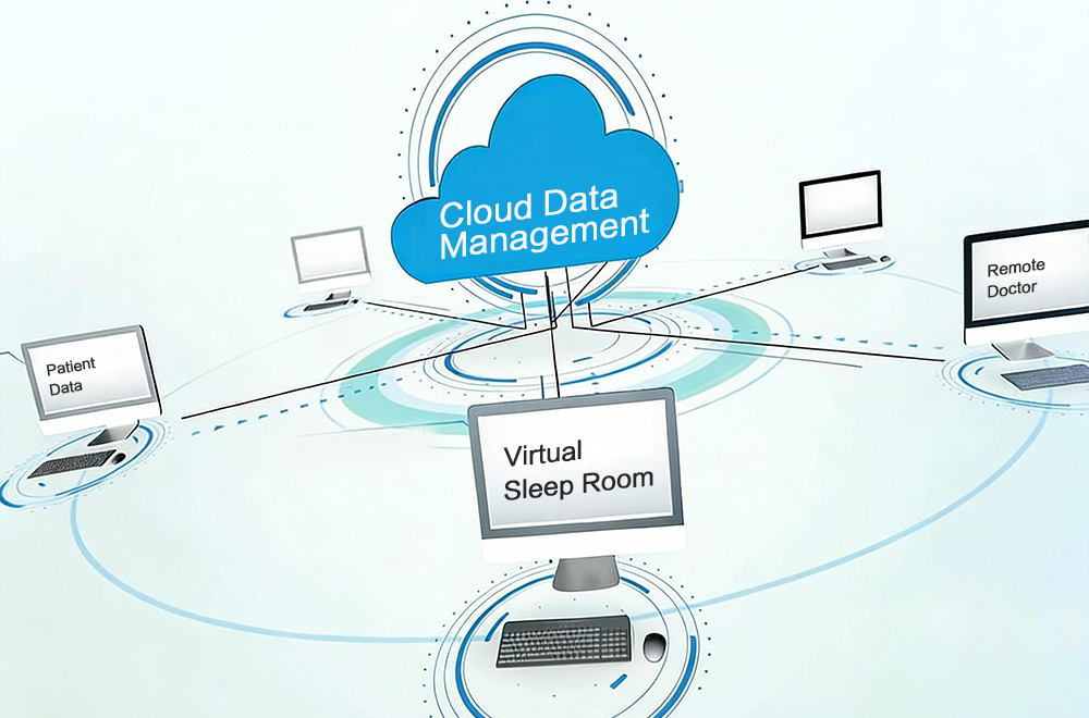 A plataforma de gestão de dados baseada em nuvem permite a visualização e análise on-line dos dados dos pacientes e oferece uma robusta função de diagnóstico remoto do sono para centros especializados em sono e para o atendimento hospitalar em diferentes níveis.