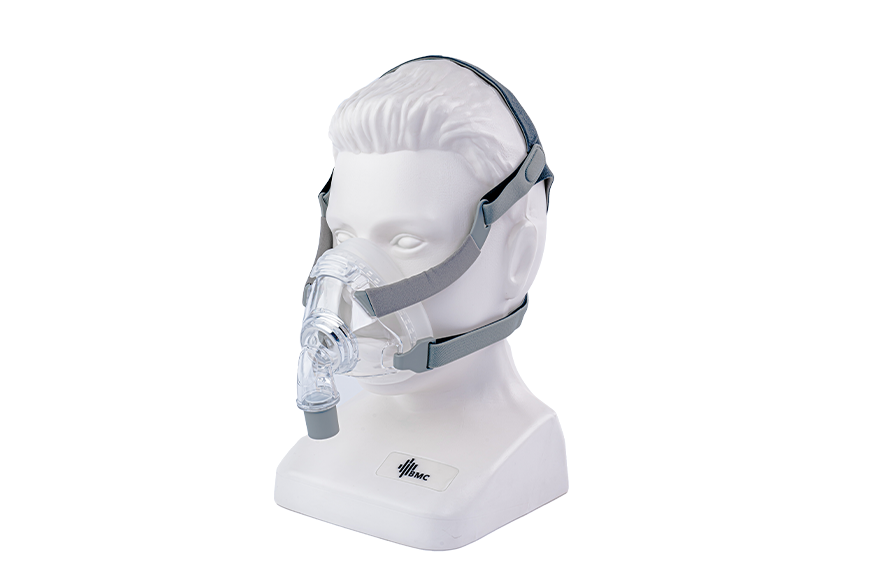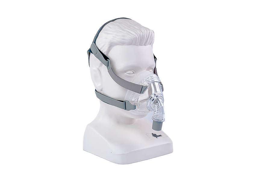 O sulco da almofada adapta-se à ponte nasal, mantendo baixo vazamento de ar e pressão reduzida sobre o rosto.