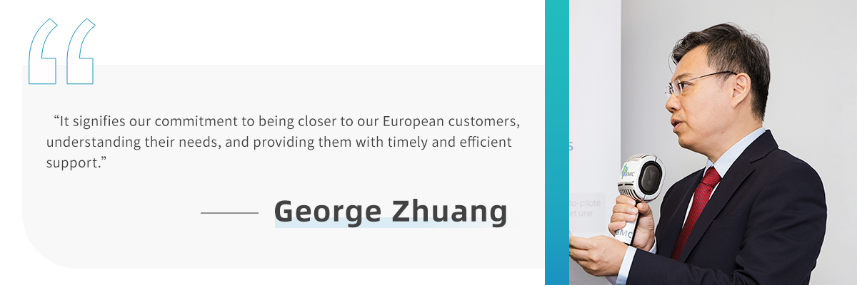 Durante a cerimônia, George Zhuang, presidente e diretor-geral da BMC Medical Co., Ltd., fez um discurso no qual relembrou os 23 anos de crescimento e conquistas da empresa. Ele também apresentou os planos para o desenvolvimento futuro da BMC França e agradeceu sinceramente aos clientes e colaboradores da empresa pelo apoio. Lyla Niu, diretora de negócios internacionais, compartilhou sua visão sobre o mercado europeu. Em seguida, Doris Dong e Julien Yu, representantes da operação francesa, participaram da cerimônia de corte da fita, que marcou oficialmente a abertura do escritório da BMC França.